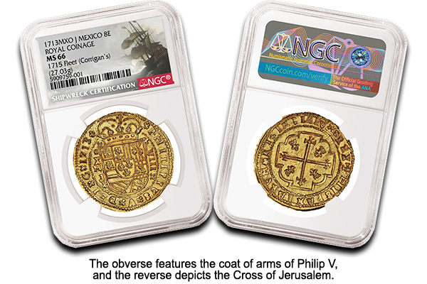“Coinage of the 1715 Fleet offers up rare riches, providing researchers a unique opportunity to study the trade and transport of the day and gives collectors the chance to acquire a high-grade example of a coin from the golden shipwreck treasure of lore. A quantity of uncirculated Spanish gold coins like this simply doesn’t exist outside of shipwreck discovery.”