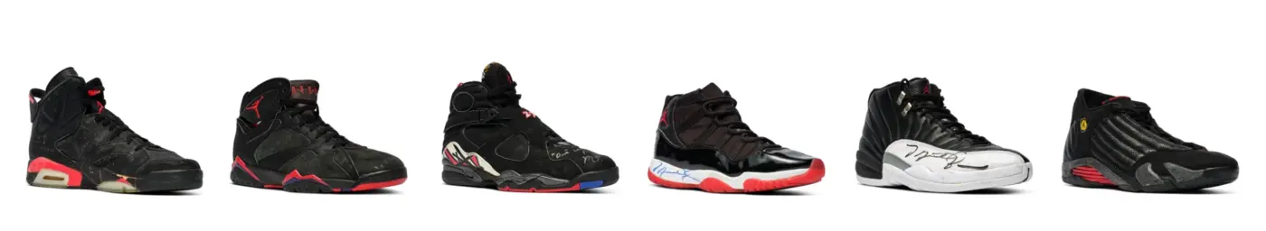 An incredibly rare collection of six Nike Air Jordan shoes that superstar Michael Jordan wore as he and the Chicago Bulls won six NBA championships has fetched an incredible $8 million at auction, setting a new record for game-worn sneakers.