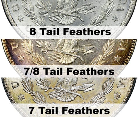 Shortly after the first release of the Morgan Dollar in 1878, someone advised the U.S. Mint that the eagle should have seven tail feathers, instead of the eight in the initial design. The 8 Tail Feather variety illustrates how minute details can often become stumbling blocks. Mint Director Henry P. Linderman ordered that the change be made to the correct number.
