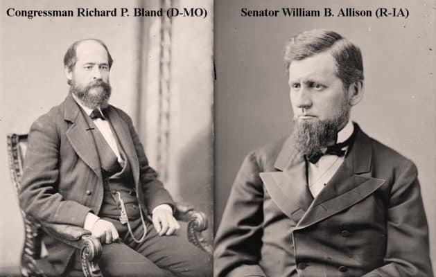 Congressman Richard Bland, known as “Silver Dick,” because of his advocacy of “free silver.” co-sponsored the act with Republican, William Allison. The Bland-Allison Act helped the United States return to bimetallism and was the birth of the Morgan Silver Dollar.