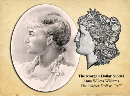 When George T. Morgan was presented the opportunity to design the new silver dollar to replace the Seated Liberty Dollar that ended production in 1873, he wanted Lady Liberty to depict an American woman of the time. A beautiful schoolteacher from Philadelphia was recommended by a friend, named Anna Willess Williams, who became Morgan’s model.