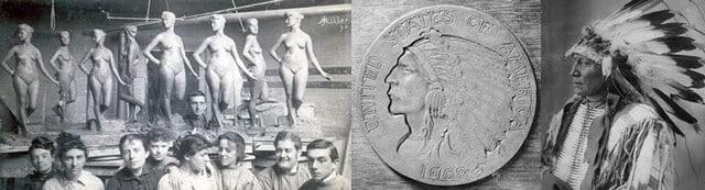 Another prominent Bostonian, sculptor Bela Lyon Pratt, was awarded the commission to design the two smaller gold denominations. Pratt, after graduating from Yale, enrolled at the Art Students League of New York where he took classes from William Merritt Chase (1849–1916), Kenyon Cox (1859–1919), Francis Edwin Elwell (1858–1922), and most importantly, Augustus Saint-Gaudens (1848–1907), who became his mentor.