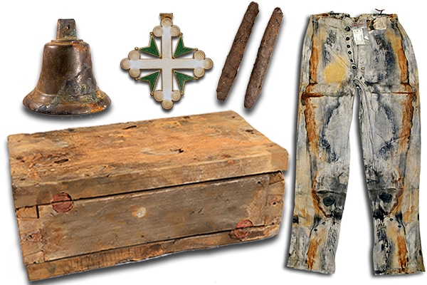 There will also be a bank treasure shipment box, items from the ship, and recovered passengers’ artifacts including 166-year-old Cuban cigars and the world’s most valuable jeans… gold prospector’s heavy-duty work pants that sold at auction for $114,000 this past December.
