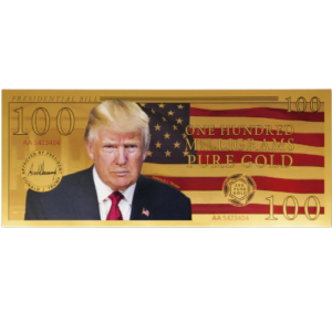Celebrate the legacy of leadership with this Presidential Gold Aurum® Note, featuring our 45th & 47th President Donald J. Trump. Crafted with 100 milligrams of .9999 pure, ethically sourced gold, this remarkable piece is a testament to both artistry and innovation. Measuring 155.5775mm by 65mm, its sleek design showcases President Trump's image in stunning detail, symbolizing strength and resilience.