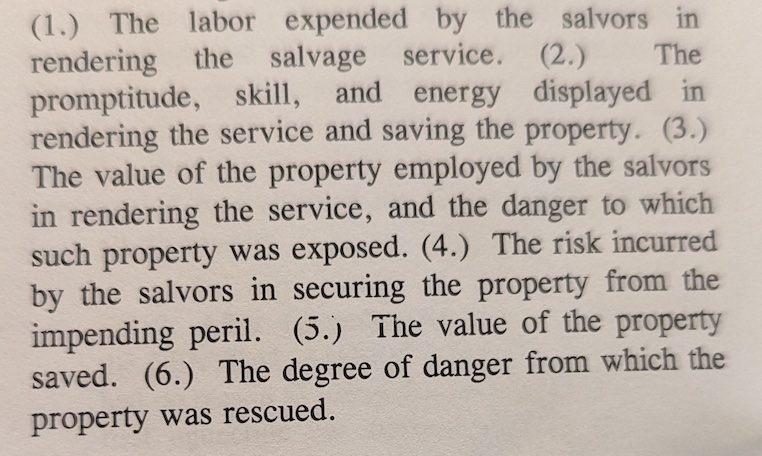 We obviously scored very high on the Blackwall Factors: our labor, our skill and energy, our valuable equipment and danger faced, our risk, a very valuable property, sunken in a state of marine peril for 130+ years.