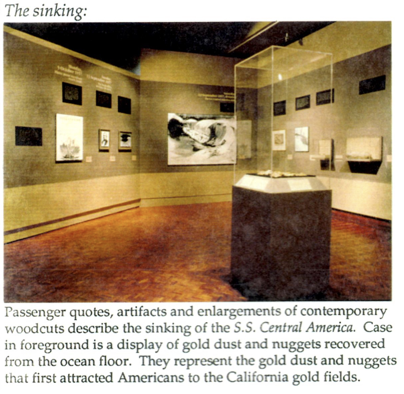 Thompson could not reach an agreement with the Underwriters for a unified marketing and monetization. For our part, during the 90s we spent a lot of resources examining grandiose marketing schemes with top consultants, people who had managed Olympic Games, displayed the Hope Diamond, and built grand opera sets. We cooperated with author Gary Kinder who wrote a non-fiction bestseller about the project, Ship of Gold – in the Deep, Blue Sea. We also had two somewhat small-splash exhibits locally in Columbus, at the Art Museum and at the Columbus Zoo, highlighting our photography and technology, and non-gold artifacts. We did not feature much gold at all. We had an arrangement of gold dust and nuggets in one case, no bars or coins.