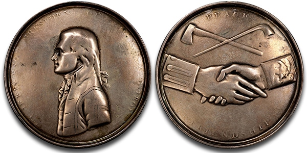 1801 Thomas Jefferson notable silver Indian Peace medal realized $55,200.