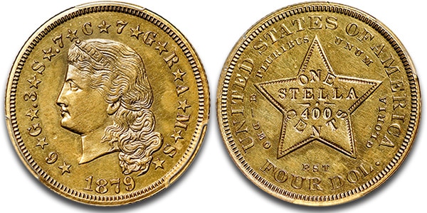 1879 Four-Dollar Gold Stella graded MS-61 by PCGS that brought $114,000.