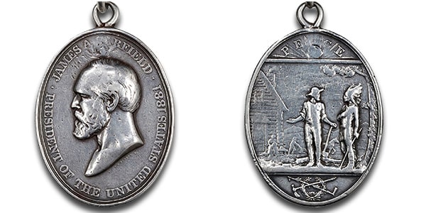 1881 James A. Garfield Indian Peace medal, provenanced to a Jicarilla Apache Chief, realized $72,000.