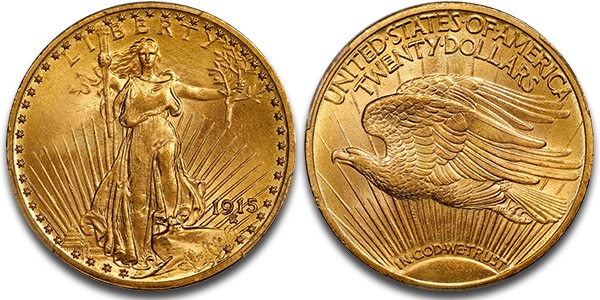 1915 Saint-Gaudens Double Eagle graded MS-65+ by PCGS brought $36,000.
