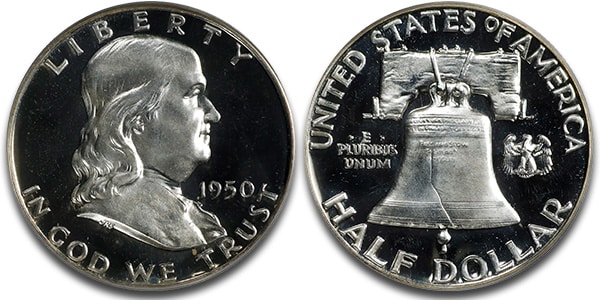 1950 Franklin half-dollar graded Proof-66 Deep Cameo by PCGS sold for a record price of $66,000.