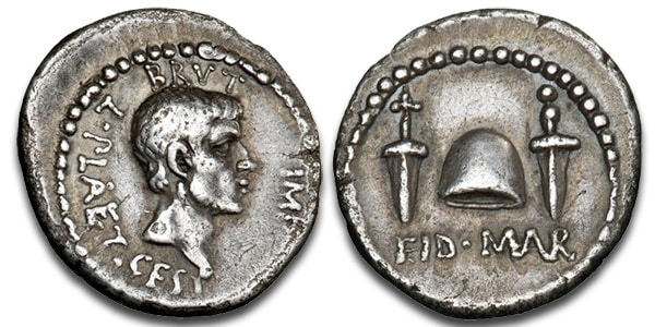 The Eid Mar or “Ides of March” silver denarius coin, commemorates the assassination of Julius Caesar on March 15, 44 BC, realized $616,747.